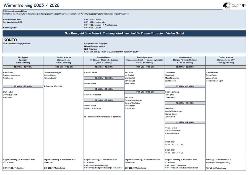 Austragung : 8 Lektionen, jeden 3. Sonntag in der grossen Reithalle.